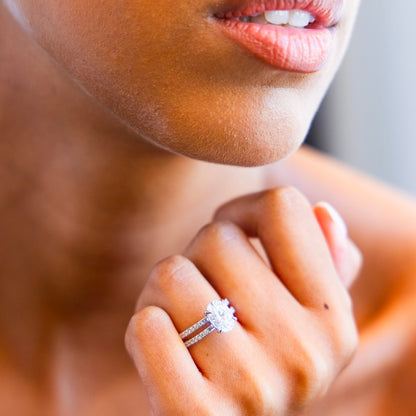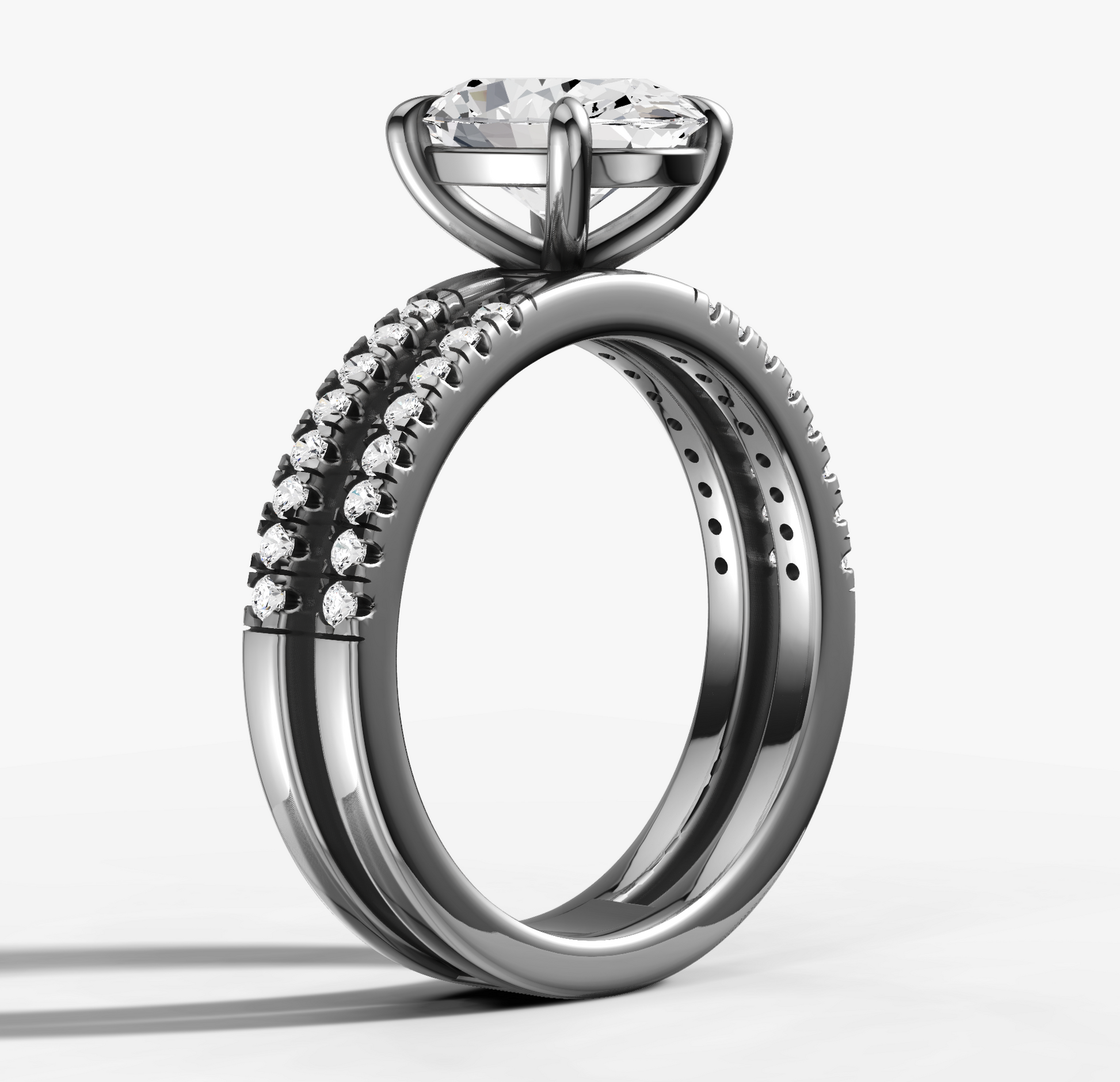 Double Pave Diamond Engagement Ring with Oval Cut Diamond - $3,800.00