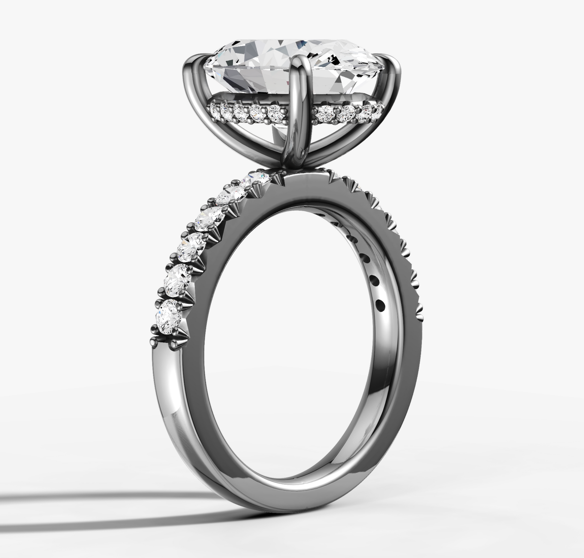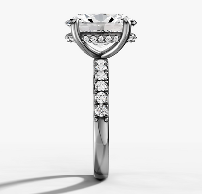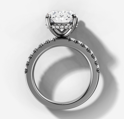French Pave Diamond Engagement Ring with Oval Cut Diamond