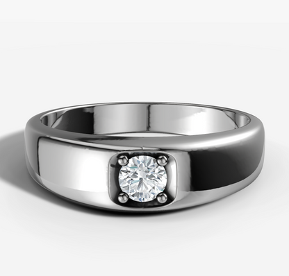 Four Prong Diamond Band Engagement Ring with Round Brilliant Cut Diamond
