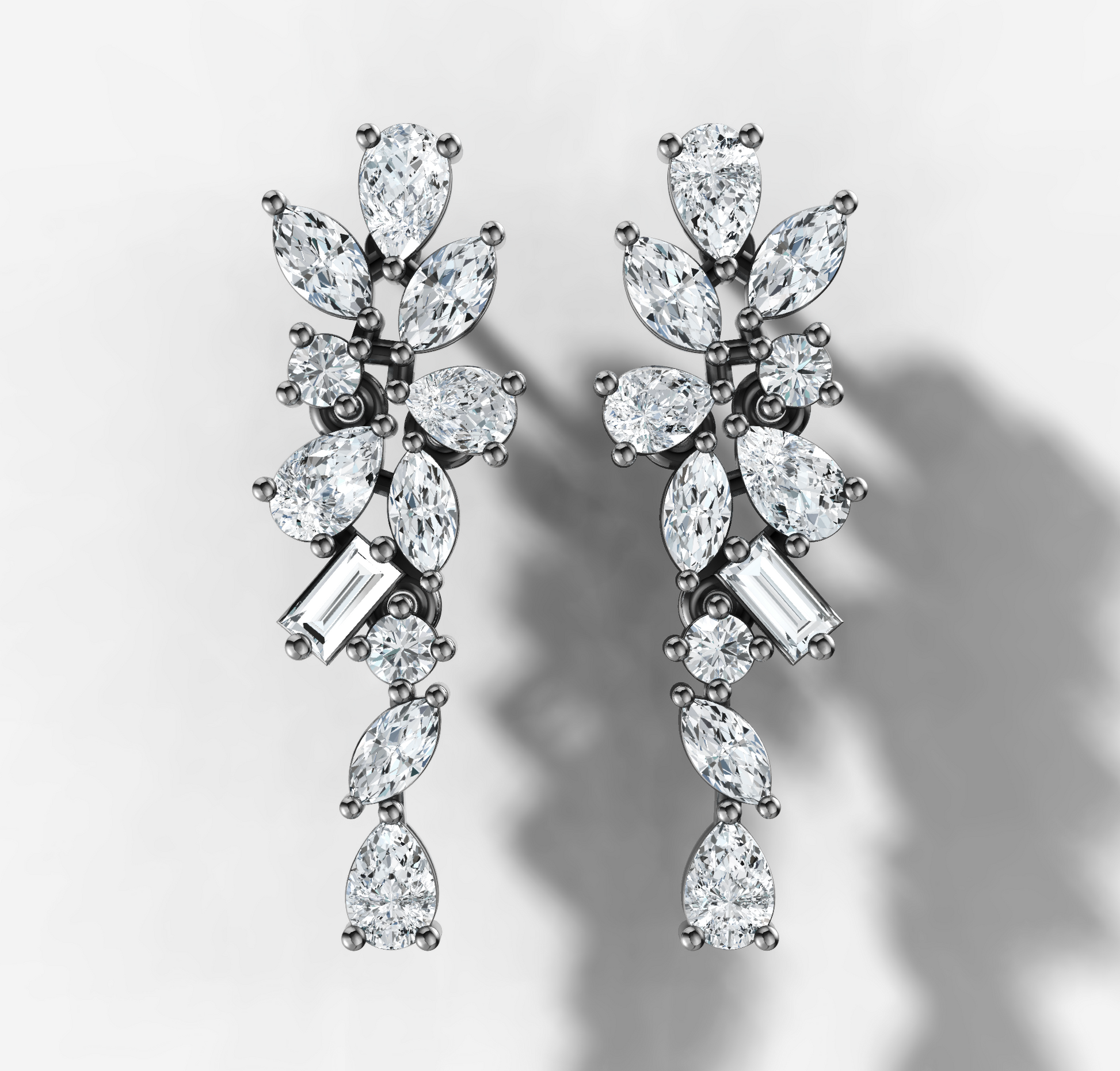 Featuring prong set pear, marquise, round and emerald cut diamonds, these drop studs are a beautiful statement piece.